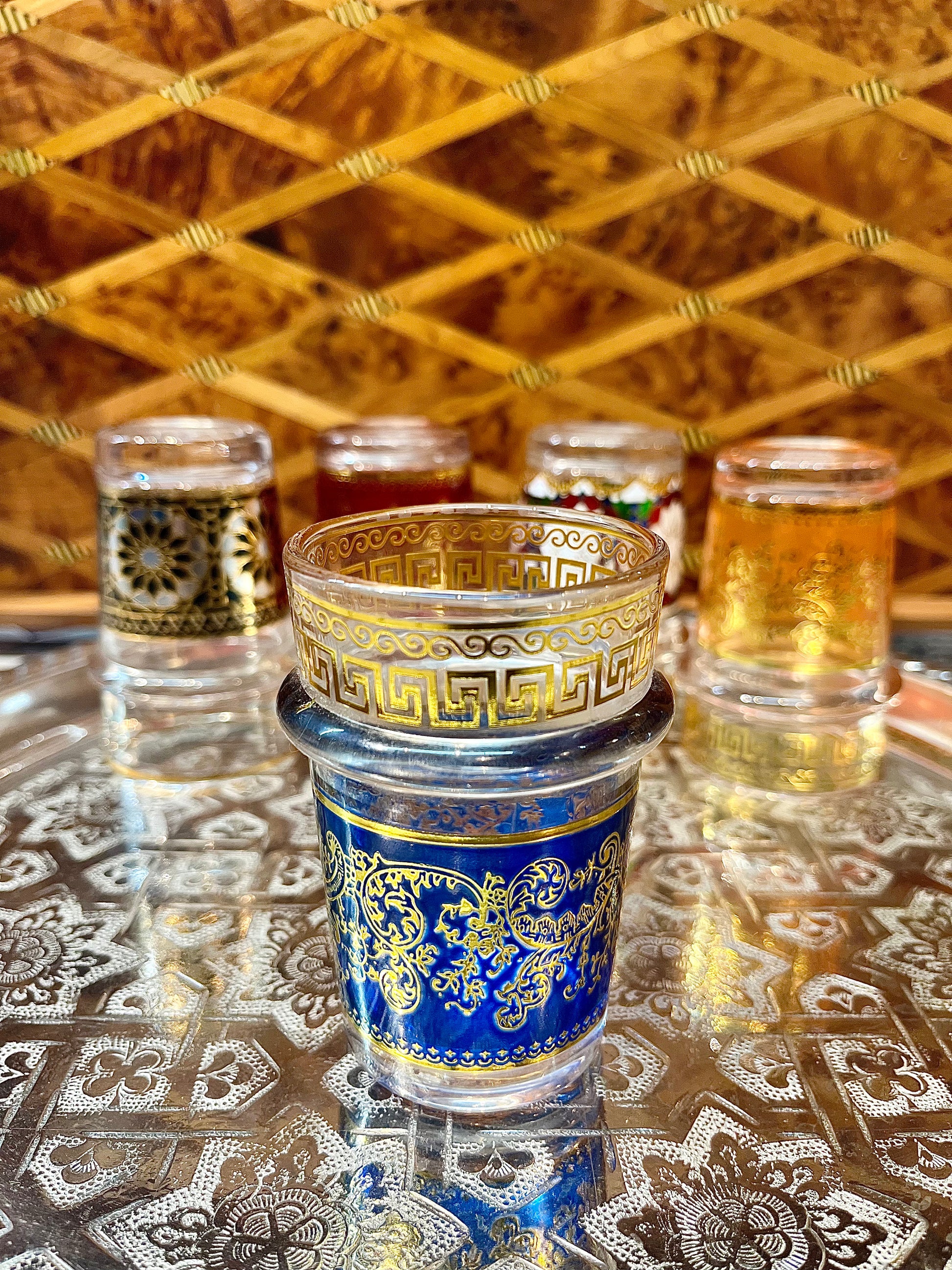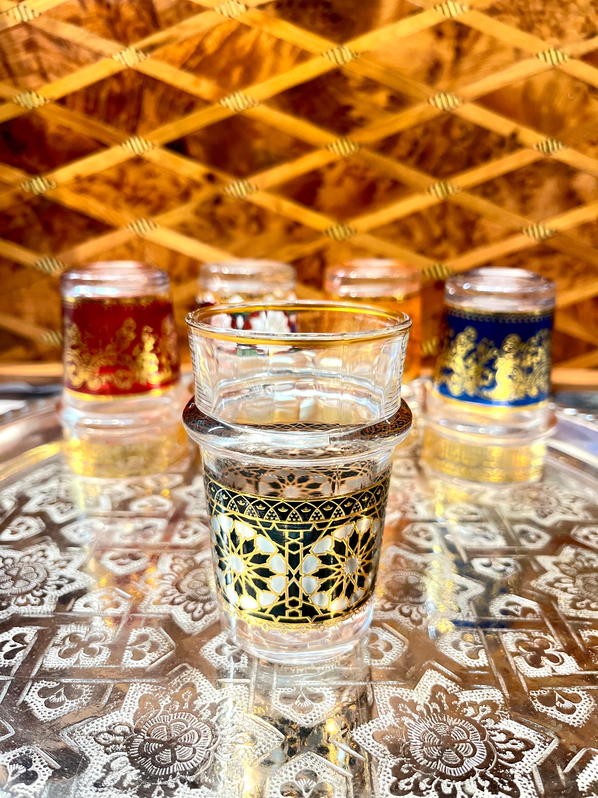 The Baraka Set is a celebration of Moroccan heritage and craftsmanship. Each cup in this collection is adorned with intricate detailing—metallic accents, ornate patterns, and hand-finished touches that reflect generations of artistry. Inspired by the Arabic word baraka, meaning “blessing,” these cups carry more than just tradition—they carry intention.